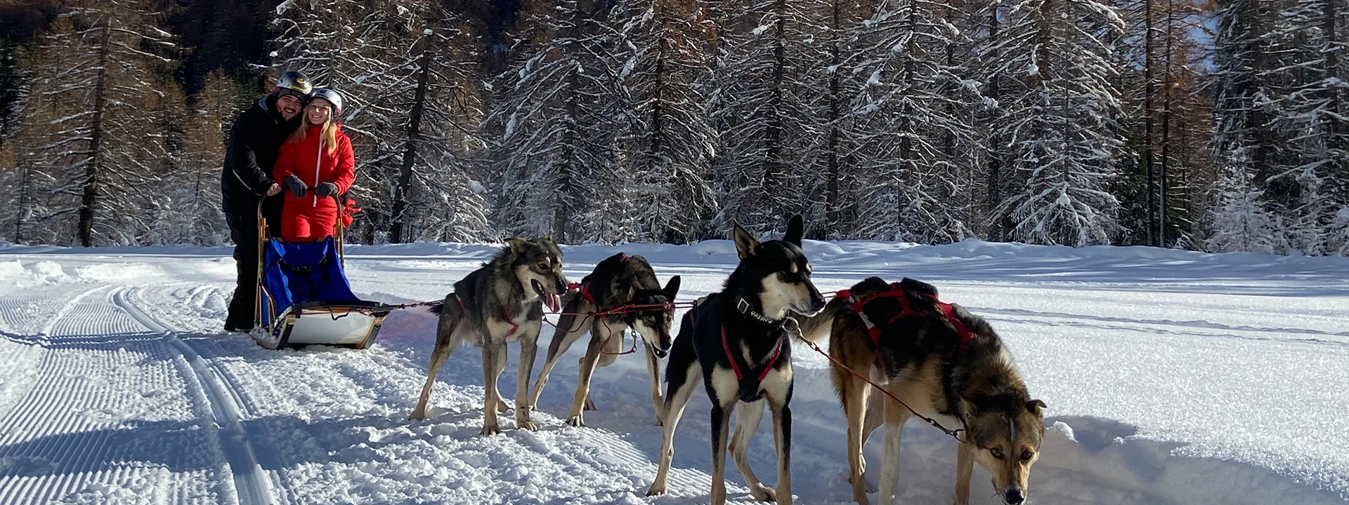 Chiudete gli occhi, ascoltate il silenzioso scendere della neve, il vento leggero tra gli abeti secolari, il sole che fa capolino scaldandovi il viso, la vostra mano che accarezza un manto morbido e protettivo… il manto dei cani del nord, di coloro che vi accompagneranno un’esperienza indimenticabile…